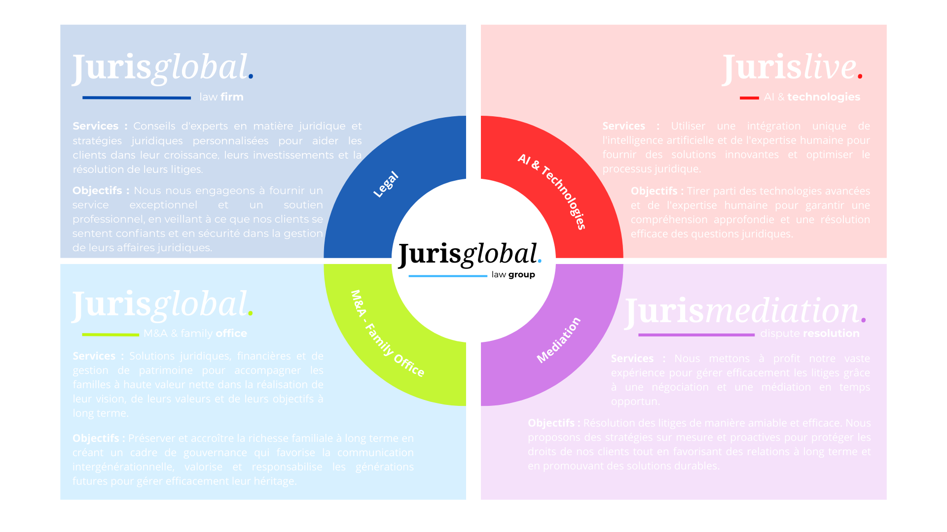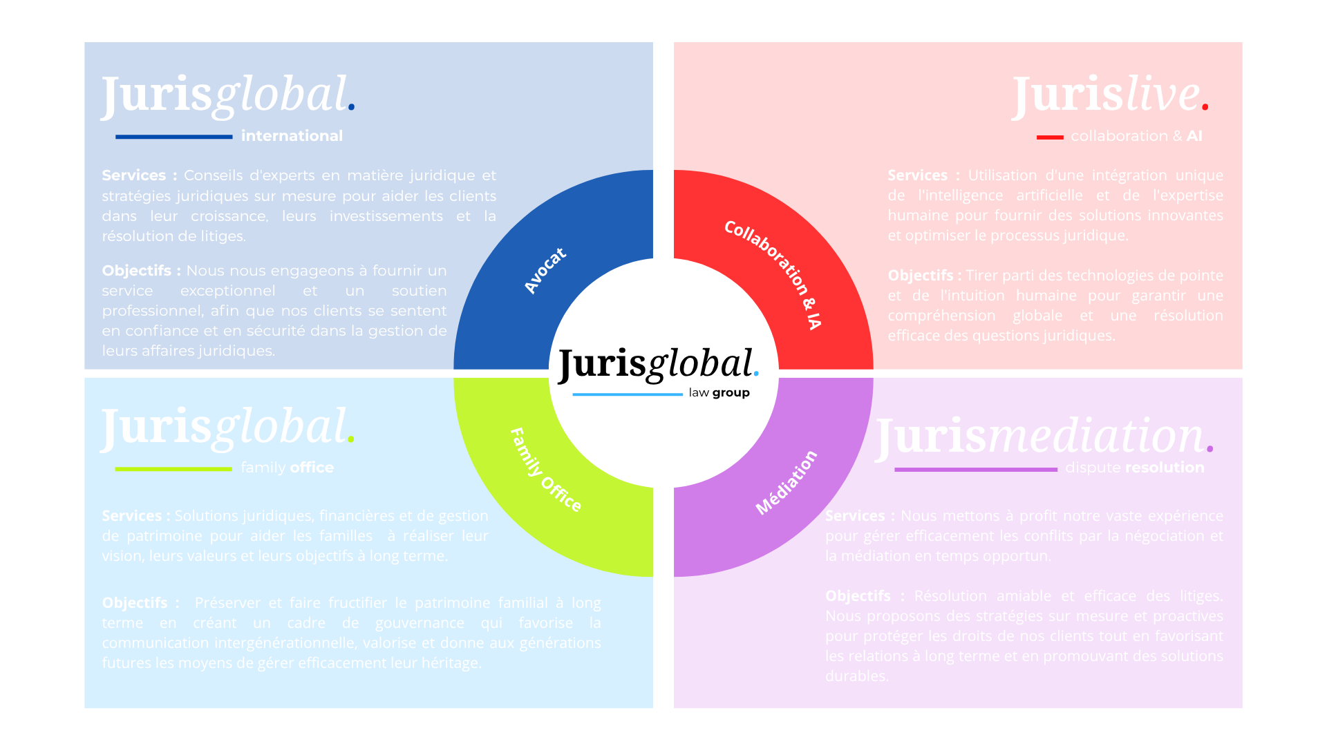 JURISGLOBAL LAW GROUP est un cabinet d’avocats d’affaires et de conseil stratégique et patrimonial nouvelle génération présent en Europe et au Moyen-Orient.